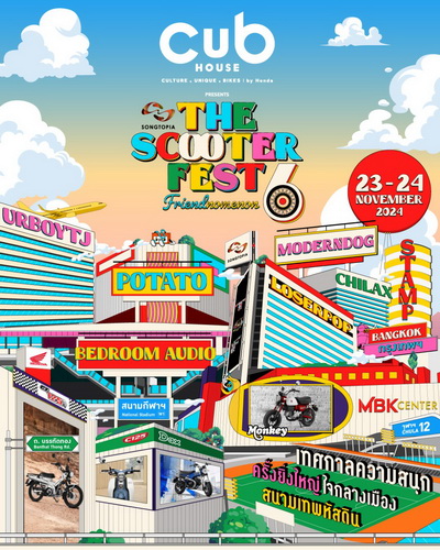 รถจักรยานยนต์ฮอนด้า ชวนชาวไบค์เกอร์และผู้รักความสนุกทุกสไตล์มาร่วมเทศกาลสุดยิ่งใหญ่ ‘CUB House Presented The Scooter Fest #6’ งานนี้รวมพลคนรักเสียงดนตรีให้ได้มาสนุกจัดเต็ม ในบรรยากาศแบบ INTERNATIONAL STADIUM บนพื้นที่กว่า 15,000 ตารางเมตร ณ สนามเทพหัสดิน ระหว่างวันที่ 23-24 พฤศจิกายน 2567 นี้ ตั้งแต่เวลา 14.00 น. เป็นต้นไป ภายในงาน พบกับการรวมตัวของไบค์เกอร์รถจักรยานยนต์ฮอนด้าทุกรุ่น และชาว CUB House ครั้งใหญ่ ทั้งรถจักรยานยนต์ Honda Monkey, Dax, CT125 และ C125 สามารถมาร่วมสนุกกันได้ฟรี! ไม่เสียค่าจ่าย โดยผู้ร่วมงานจะได้พบกับโซนคัสตอมที่เปิดโอกาสให้นำรถจักรยานยนต์คันโปรดมาประชันความคราฟต์ในสไตล์ของตัวเอง และยังได้พบกับร้านของแต่งสุดเอ็กซ์คลูซีฟ พร้อมส่วนลดพิเศษสูงสุด 80% เฉพาะในงานอีกด้วย