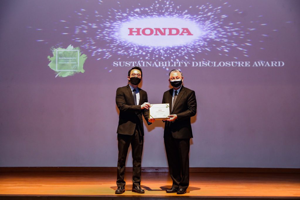 สำหรับรางวัลเกียรติคุณการเปิดเผยข้อมูลความยั่งยืน หรือรางวัล Sustainability Disclosure Award พิจารณาตัดสินรางวัลจากรายงานความยั่งยืนโดยใช้เกณฑ์ตัดสิน 3 ด้าน ที่อ้างอิงจาก Coalition for Environmentally Responsible Economies (CERES) หรือแนวร่วมกลุ่มเศรษฐกิจที่รับผิดชอบต่อสิ่งแวดล้อม และ Association of Chartered Certified Accountants (ACCA) หรือสมาคมผู้สอบบัญชีรับอนุญาต ประกอบด้วย ด้านความสมบูรณ์ของเนื้อหา น้ำหนักคะแนน 45% ด้านความเชื่อถือได้ของเนื้อหา น้ำหนักคะแนน 35% ด้านการสื่อสารและนำเสนอ เนื้อหาน้ำหนักคะแนน 20% ตามลำดับทั้งนี้ บริษัท ไทยฮอนด้า แมนูแฟคเจอริ่ง จำกัด คือ หนึ่งใน 40 องค์กรชั้นนำที่ได้รับรางวัลเกียรติคุณสูงสุด Sustainability Disclosure Award ประจำปี 2021 ภายใต้ประชาคมการเปิดเผยข้อมูลความยั่งยืนหรือ SDC และเป็นการคว้ารางวัลนี้ได้อย่างต่อเนื่อง 3 ปีซ้อน นับตั้งแต่ปี 2019-2021