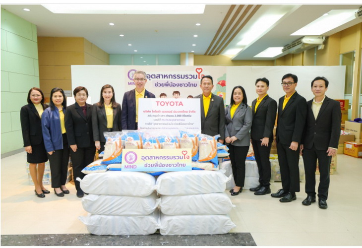 นายสุรภูมิ อุดมวงศ์ รองกรรมการผู้จัดการใหญ่ บริษัท โตโยต้า มอเตอร์ ประเทศไทย จำกัด มอบข้าวสารจากโรงสีข้าวรัชมงคล จำนวน 2,000 กิโลกรัม แก่กระทรวงอุตสาหกรรม เพื่อร่วมช่วยเหลือผู้ประสบอุทกภัยทั่วประเทศ โดยมี นายณัฐพล รังสิตพล ปลัดกระทรวงอุตสาหกรรม เป็นตัวแทนรับมอบ ณ บริเวณห้องโถง ชั้น 1 สำนักงานปลัดกระทรวงอุตสาหกรรม เมื่อวันที่ 29 สิงหาคม 2567 ที่ผ่านมา