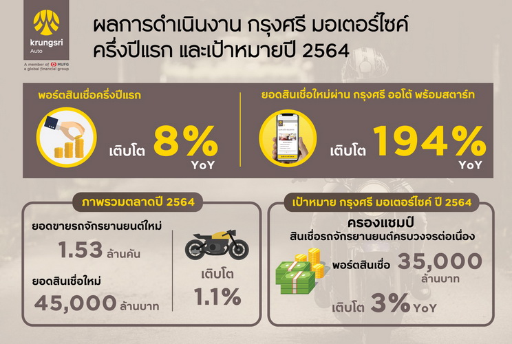 นางกฤติยา ศรีสนิท ประธานคณะเจ้าหน้าที่ด้านธุรกิจสินเชื่อยานยนต์ ธนาคารกรุงศรีอยุธยา จำกัด (มหาชน) กล่าวว่า “ตลาดรถจักรยานยนต์ในครึ่งปีแรกที่ผ่านมายังคงอยู่ในบริบทที่ท้าทายอย่างไรก็ตาม กรุงศรี มอเตอร์ไซค์ ยังคงรักษาการเติบโตของพอร์ตสินเชื่อไว้ได้ที่ 8% จากช่วงเดียวกันของปีก่อนหน้า ด้วยการให้ความสำคัญกับการนำนวัตกรรมดิจิทัลมาสนับสนุนการขายของพันธมิตรผู้แทนจำหน่ายฯ โดยเฉพาะ กรุงศรี ออโต้ พร้อมสตาร์ท ซึ่งช่วยให้ลูกค้าสามารถเช็กวงเงินประเมินสินเชื่อได้ด้วยตนเอง และอำนวยความสะดวกแก่ดีลเลอร์รถจักรยานยนต์ในช่วงเวลาที่แพลตฟอร์มออนไลน์กลายมาเป็นช่องทางสำคัญในการซื้อขาย โดยในครึ่งปีแรก ยอดสินเชื่อใหม่ของ กรุงศรี มอเตอร์ไซค์ ผ่าน กรุงศรี ออโต้ พร้อมสตาร์ท เติบโตสูงถึง 194% จากช่วงเดียวกันของปีก่อนหน้า นอกจากนี้ เรายังคงทำแคมเปญร่วมกับหลากหลายแบรนด์ผู้ผลิตอย่างต่อเนื่อง โดยให้ความสำคัญกับการออกแบบเงื่อนไขให้ตอบโจทย์กลุ่มลูกค้าของแต่ละแบรนด์มากที่สุด โดยนำเสนอผ่านทั้งช่องทางออนไลน์ของแบรนด์ผู้ผลิตและแพลตฟอร์มออนไลน์ของกรุงศรี ออโต้ ตลอดจนสาขาของดีลเลอร์ทั่วประเทศ ในขณะเดียวกัน กรุงศรี มอเตอร์ไซค์ ยังได้เดินหน้าตอบสนองทุกความต้องการด้านการเงินของผู้ใช้รถจักรยานยนต์ผ่านผลิตภัณฑ์ที่ครบวงจรที่สุดในตลาด ครอบคลุมทุกเซ็กเมนต์ ไม่ว่าจะเป็นสินเชื่อรถจักรยานยนต์และบิ๊ก ไบค์ ใหม่ สินเชื่อรถจักรยานยนต์ และบิ๊ก ไบค์ มือสอง และสินเชื่อเพื่อคนมีรถ คาร์ ฟอร์ แคช มอเตอร์ไซค์”