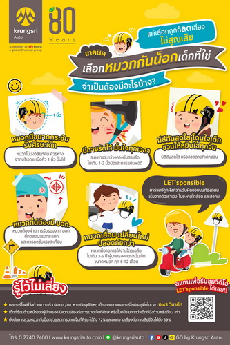 “กรุงศรี ออโต้” ผู้นำธุรกิจสินเชื่อยานยนต์ครบวงจร เครือธนาคารกรุงศรีอยุธยา จำกัด (มหาชน) ได้เล็งเห็นความสำคัญของประเด็นนี้ และต้องการให้ทุกคนสามารถห่างไกลจากอุบัติเหตุที่อาจเกิดขึ้น จึงได้สานต่อโครงการ LET’sponsible เพื่อร่วมปลูกฝังความรับผิดชอบต่อสังคมและส่งเสริมความปลอดภัยบนท้องถนนโดยมุ่งหวังให้ผู้ปกครองทราบถึงความสำคัญของการสวมหมวกกันน็อกให้เด็กและปลูกฝังให้พวกเขาเกิดพฤติกรรมสวมใส่หมวกกันน็อกทุกครั้งที่เดินทาง พร้อมแนะนำวิธีเลือกหมวกกันน็อกที่ถูกต้อง