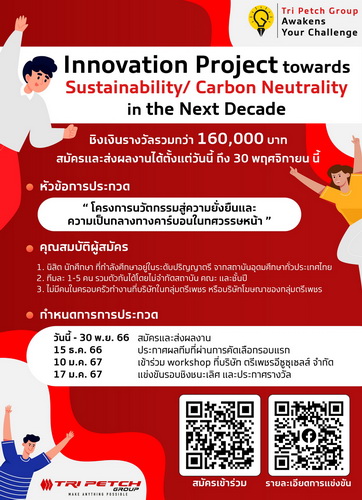 คุณวิชัย สินอนันต์พัฒน์ กรรมการ บริษัท ตรีเพชรอีซูซุเซลส์ จำกัด กล่าวว่า“Tri Petch Group Awakens Your Challenge 2023 เป็นโครงการที่จัดต่อเนื่องเป็นปีที่ 2เปิดโอกาสให้น้อง ๆ นิสิต นักศึกษารุ่นใหม่ได้แสดงความคิดสร้างสรรค์ในการวางแผนยุทธศาสตร์องค์กรที่สามารถนำไปสู่การปฏิบัติได้จริง ด้วยการนำความรู้ทางวิชาการต่าง ๆ ที่ได้ศึกษามาและข้อมูลทางธุรกิจของกลุ่มตรีเพชร มาประยุกต์ใช้เพื่อให้เกิดเป็นมุมมองใหม่ ๆ ทางธุรกิจ ในเรื่องสำคัญที่กำลังได้รับความสนใจทั้งในระดับประเทศและระดับโลก ภายใต้หัวข้อ “โครงการนวัตกรรมสู่ความยั่งยืนและความเป็นกลางทางคาร์บอนในทศวรรษหน้า” (“Innovation Project towards Sustainability / Carbon Neutrality in the Next Decade”) โดยเปิดกว้างให้มีการสร้างสรรค์ไอเดียได้อย่างเต็มที่ สามารถเข้าร่วมการแข่งขันได้ตั้งแต่ทีมละ 1-5 คน ไม่จำกัดสถาบัน คณะ และชั้นปี สำหรับทีมที่ผ่านเข้ารอบชิงชนะเลิศจะมีสิทธิ์เข้าร่วมกิจกรรม Workshop พิเศษกับบริษัท ตรีเพชรอีซูซุเซลส์ จำกัด เพื่อเสริมสร้างความรู้ และประสบการณ์ พร้อมนำเสนอแผนต่อคณะกรรมการในรอบชิงชนะเลิศ ชิงเงินรางวัลรวมมูลค่ากว่า 160,000 บาท”สามารถสมัครโดยการสแกน QR Code ด้านล่าง และส่งผลงานได้ถึงวันที่ 30 พฤศจิกายน 2566