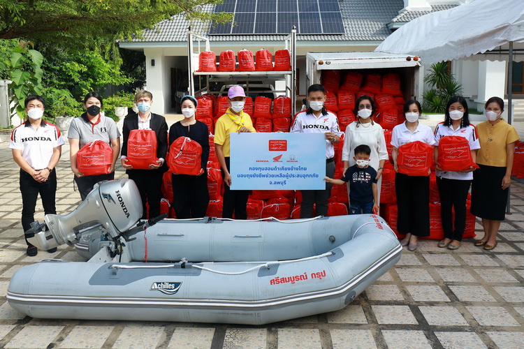 กองทุนฮอนด้าเคียงข้างไทย ภายใต้มูลนิธิฮอนด้าประเทศไทย และกลุ่มบริษัทฮอนด้าในประเทศไทย สานต่อการมอบความช่วยเหลือเบื้องต้นให้สังคมไทยยามเกิดสาธารณภัย ผสานตัวแทนผู้จำหน่ายรถยนต์และรถจักรยานยนต์ฮอนด้าใน 6 จังหวัดในพื้นที่จังหวัดลพบุรี นครสวรรค์ สุโขทัย เพชรบูรณ์ ชัยภูมิ และนครราชสีมา ที่ประสบอุทกภัยน้ำเอ่อเข้าท่วมพื้นที่การเกษตรและบ้านเรือนได้รับความเสียหายในระหว่างเดือนกันยายนและตุลาคม 2564 ด้วยการส่งมอบถุงยังชีพจำนวนรวม 1,600 ถุง และบริการเรือยางพร้อมเครื่องยนต์จำนวน 2 ลำ รวมมูลค่า 1 ล้านบาท ให้แก่ผู้ว่าราชการจังหวัดและตัวแทนฯ แต่ละจังหวัด เพื่อนำไปแจกจ่ายบรรเทาความเดือดร้อนและส่งต่อความปรารถนาดีไปยังพี่น้องผู้ประสบภัยทั้ง 6 จังหวัดต่อไป