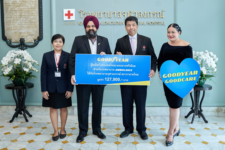 บริษัท กู๊ดเยียร์ (ประเทศไทย) จำกัด (มหาชน) เดินหน้าสานต่อแคมเปญ “กู๊ดเยียร์ กู๊ดแคร์” ต่อเนื่องเป็นปีที่สี่ ส่งมอบยาง “กู๊ดเยียร์ คาร์โก้ แมกซ์” ยางรถกระบะและรถตู้ระดับพรีเมียมที่มาพร้อมเทคโนโลยี แมกซ์โหลด (MaxLoad) เทคโนโลยีเอกสิทธิ์เฉพาะของกู๊ดเยียร์ ส่งผลให้ได้ยางที่แกร่ง ทนทาน และสามารถรับน้ำหนักที่เพิ่มขึ้น เหมาะสมกับทุกสภาพถนนในประเทศไทย ให้กับ โรงพยาบาลจุฬาลงกรณ์ สภากาชาดไทย และอีก 6 โรงพยาบาลทั่วประเทศ รวมมูลค่า 200,000 บาทเพื่อเป็นการช่วยเสริมความปลอดภัยให้กับรถพยาบาลและรถฉุกเฉินประจำโรงพยาบาลให้สามารถทำงานรับ-ส่งผู้ป่วย หรือใช้งานภายในได้อย่างปลอดภัย พร้อมอายุการใช้งานที่ยาวนาน อีกทั้งยังตั้งเป้าเดินหน้าส่งมอบความปลอดภัยให้กับโรงพยาบาลทั่วประเทศอย่างต่อเนื่อง โดยการสร้างสังคมที่ปลอดภัย ถือเป็นหนึ่งในพันธกิจตามวิสัยทัศน์ของบริษัทฯ ที่ต้องการเป็นที่รู้จักในด้านการดำเนินงานที่ปลอดภัยที่สุดในโลก