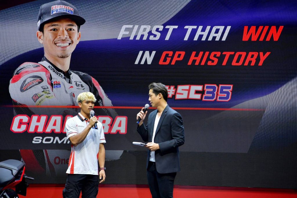 “ก้อง” สมเกียรติ จันทรา นักบิดประวัติศาสตร์ชาวไทย เจ้าของอันดับ 10 ของโลก ในรุ่นโมโตทู ร่วมเป็นแขกรับเชิญเปิดตัวรถจักรยานยนต์ฮอนด้าใหม่ ในงาน “มอเตอร์เอกซ์โป 2022” ที่บูธรถจักรยานยนต์ฮอนด้า (G01) อาคารชาเลนเจอร์ เมืองทองธานี เจ้าตัวเปิดใจ สุดปลื้มกับผลงานของตัวเอง หลังคว้าอันดับ 10 ของโลก ในรุ่นโมโตทู มาครองและสามารถเก็บได้มากถึง 128 คะแนน ชี้แม้ว่าตอนนี้จะอยู่ในช่วงปิดฤดูกาล แต่ยังซ้อมเข้ม เพื่อรักษาความฟิตเอาไว้ลุยต่อในปี 2023 มั่นใจว่าจะจับคู่กับ ไอ โอกูระ ทีมเมทชาวญี่ปุ่นสร้างผลงานให้ดีขึ้นกว่าเดิม ตั้งเป้าฤดูกาลใหม่จะทำผลงานให้ติดท็อปไฟว์ของโลกให้ได้