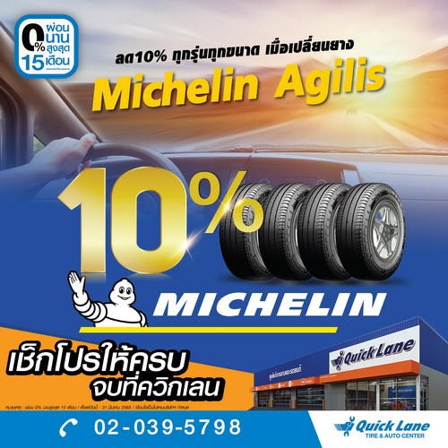 - ยางมิชลิน Agilis ลด 10% ทุกรุ่น ทุกขนาด พร้อมรับประกันคุณภาพสูงสุดถึง 6 ปี