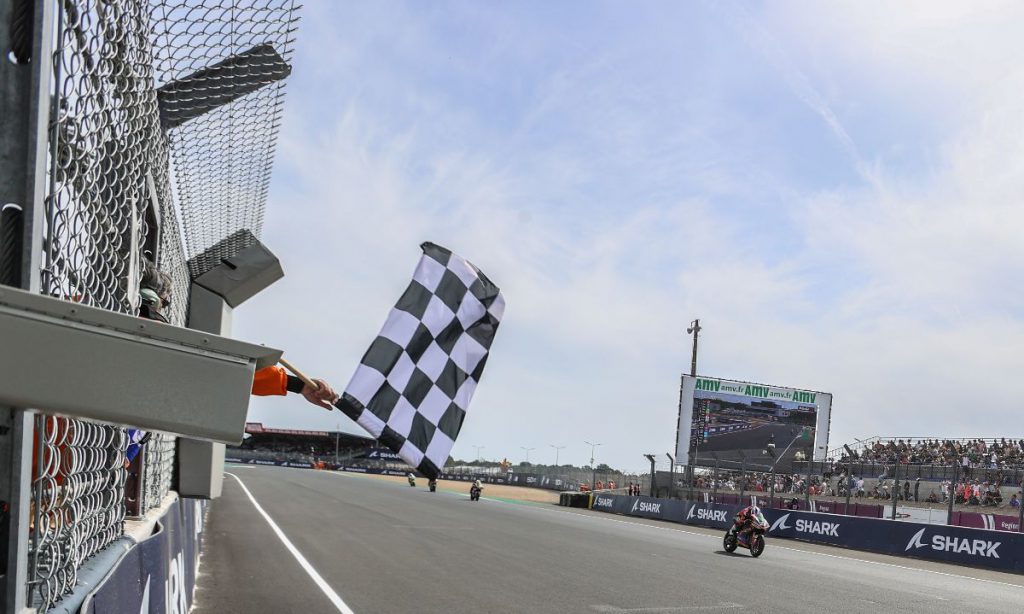 Mattia Casadei (Pons Racing 40) เป็นผู้ชนะการแข่งขัน FIM Enel MotoE™ World Cup! ทหารผ่านศึกชาวอิตาเลียนเห็นความท้าทายที่ร้ายแรงจากเพื่อนร่วมชาติ Kevin Zannoni (Ongetta SIC58 Squadra Corse) ในการแข่งขัน 1 ที่ SHARK Grand Prix de France เพื่อคว้าแชมป์สาวงามของเขาในถ้วย Zannoni โยนทุกอย่างในการเสนอราคาของเขาสําหรับชัยชนะ แต่ตีดาดฟ้าบนตักสุดท้ายเมื่อเขาถามมากเกินไปของยางหน้าของเขาที่เทิร์น 13 อย่างไรก็ตามความเร็วเป็นภาพเตือนสําหรับวันอาทิตย์