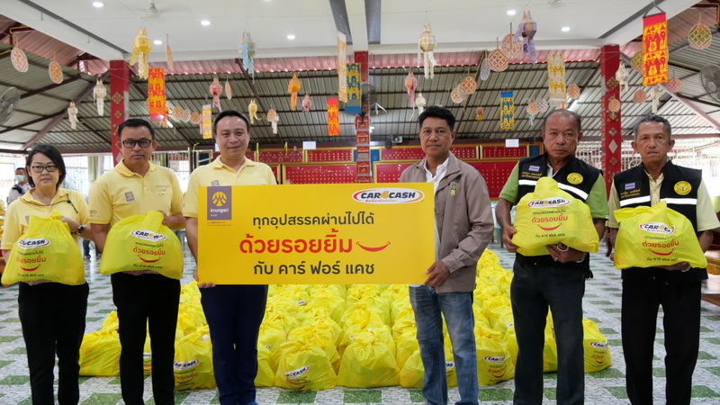 “คาร์ ฟอร์ แคช” ผู้นำตลาดสินเชื่อเพื่อคนมีรถ เดินหน้าช่วยเหลือและส่งกำลังใจให้รอยยิ้ม (Car4Cash ผู้ประสบภัยในพื้นที่ที่มีสถานการณ์น้ำท่วมรุนแรง ผ่านโครงการ “ถุงเติมSmile Pack)” ปีที่สาม โดยนายพรเทพ ถิรสุนทรากุล (ที่ 3 จากซ้าย) ผู้ช่วยกรรมการผู้จัดการใหญ่ ผู้บริหารสายงานการตลาด ธุรกิจสินเชื่อยานยนต์ ธนาคารกรุงศรีอยุธยา จำกัด (มหาชน) มอบถุงเติมรอยยิ้ม เครื่องอุปโภคบริโภคที่จำเป็นแก่นายธเนศ สนธิ (ที่ 3 จากขวา) นายกเทศมนตรีตำบลหัวเวียง อำเภอเสนา จังหวัดพระนครศรีอยุธยา เพื่อส่งต่อให้กับผู้ประสบภัยน้ำท่วมและชุมชนในพื้นที่อำเภอเสนา จังหวัดพระนครศรีอยุธยา ทั้งนี้ “คาร์ ฟอร์ แคช” มีแผนส่งมอบถุงเติมรอยยิ้มจำนวน 1,500 ถุง ผ่านสาขากรุงศรี ออโต้ ให้แก่ผู้ประสบภัยน้ำท่วมและชุมชนที่ได้รับผลกระทบในพื้นที่ 9 จังหวัดทั่วประเทศไทย ได้แก่ พระนครศรีอยุธยา สระบุรี  ขอนแก่น เลย สุรินทร์ ศรีสะเกษ ร้อยเอ็ด มหาสารคาม และอุบลราชธานี