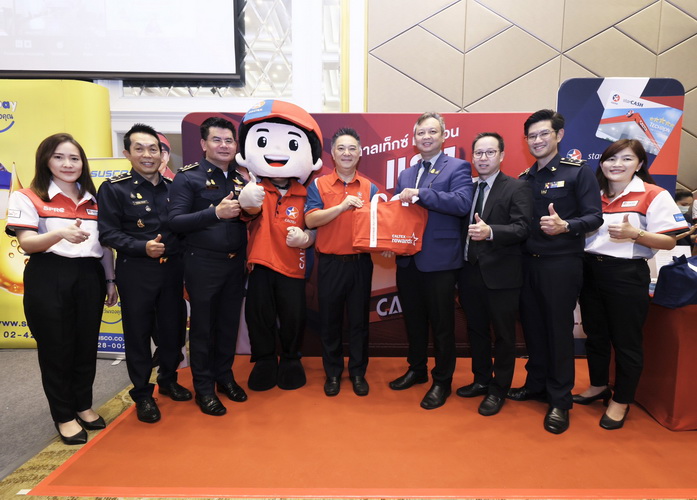 นายกองตรี พิสิษฏ์ พิพัฒน์วิไลกุล (ที่ 4 จากขวา) ที่ปรึกษารัฐมนตรีว่าการกระทรวงพาณิชย์ เยี่ยมชมบูธคาลเท็กซ์ในโอกาสเข้าร่วมพิธีลงนามความร่วมมือโครงการ “หัวจ่ายเชื้อเพลิงมาตรฐาน” โดยมี นายณรงค์ฤทธิ์ ชัยยะราษฎร์ (ที่ 5 จากขวา) ผู้ช่วยกรรมการผู้จัดการใหญ่ ฝ่ายปฏิบัติการและการตลาดธุรกิจผลิตภัณฑ์น้ำมันเชื้อเพลิง บริษัท สตาร์ ฟูเอลส์ มาร์เก็ตติ้ง จำกัด (SFL) ซึ่งเป็นบริษัทในเครือของบริษัท สตาร์ ปิโตรเลียม รีไฟน์นิ่ง จำกัด (มหาชน) (SPRC) และเป็นผู้ได้รับสิทธิแต่เพียงผู้เดียวในการประกอบธุรกิจน้ำมันเชื้อเพลิงภายใต้ชื่อคาลเท็กซ์ในประเทศไทย พร้อมด้วยคณะผู้บริหาร ให้การต้อนรับ พร้อมแนะนำผลิตภัณฑ์น้ำมันคาลเท็กซ์ที่มีส่วนผสมของเทครอน ลิขสิทธิ์เฉพาะของ คาลเท็กซ์ ตอกย้ำภาพลักษณ์น้ำมันที่ช่วยให้รถแรงและประหยัด ณ ห้องบุรฉัตรไชยากร สำนักงานปลัดกระทรวงพาณิชย์ จังหวัดนนทบุรี