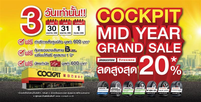 ค็อกพิท (COCKPIT) ศูนย์บริการรถยนต์ครบวงจรฟาสต์ฟิต (Fast Fit) ส่งโปรโมชันพิเศษ จัดเต็มความคุ้มค่ามอบให้กับลูกค้า พบกับส่วนลดยางรถยนต์ BRIDGESTONE และ FIRESTONE สูงสุดถึง 20% พร้อมฟรี! บริการดูแลรักษารถยนต์ สิทธิพิเศษแบบนี้มอบให้ลูกค้าคนพิเศษที่ใช้บริการค็อกพิททุกสาขาทั่วประเทศ ตลอด 3 วัน เท่านั้น! ตั้งแต่วันที่ 30 พฤษภาคม 2568 – 1 มิถุนายน 2568