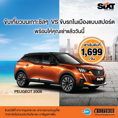 หลังจาก ซิกท์ รถเช่า ประเทศไทย จับมือ เปอโยต์ ประเทศไทย ปล่อยเช่า เปอโยต์ 5008 เอสยูวี7 ที่นั่ง ซึ่งได้เสียงตอบรับเป็นอย่างดี วันนี้เปิดดีลอีกครั้ง นำเปอโยต์ 2008 คอมแพ็กต์เอสยูวีดีไซน์โฉบเฉี่ยวมาเข้าฟลีท หวังเจาะฐานลูกค้ากลุ่มเจเนอเรชั่น วาย รวมถึงผู้ที่ชื่นชอบการเดินทางท่องเที่ยว