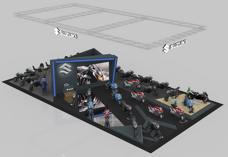 ภายในบูธของ ซูซูกิ ได้แบ่งโซนการจัดแสดงออกเป็น 3 โซน ได้แก่ Suzuki Sport Area กับการยลโฉมตัวจริงครั้งแรกของ “The Legend is Back” All New Suzuki Hayabusa พญาเหยี่ยวเจ้าแห่งความเร็ว และครั้งแรกกับตัวจริงของ New Suzuki Burgman 400 ที่ Suzuki Street Area และที่พลาดไม่ได้กับ Highlight สำหรับบูธ ซูซูกิ ในงานนี้คือ การผจญภัยสุดมันไปกับ Suzuki Adventure Area