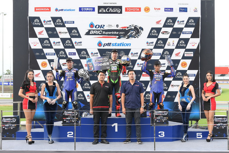 การแข่งขันจักรยานยนต์ทางเรียบชิงแชมป์ประเทศไทย รายการ โออาร์ บีอาร์ไอซี ซูเปอร์ไบค์ 2021 เปิดฉากดวลความเร็วสนามแรกอย่างเป็นทางการเมื่อวันอาทิตย์ที่ 19 กันยายนที่ผ่านมา โดยรุ่นใหญ่ที่สุดของประเทศไทยอย่าง ซูเปอร์ไบค์ 1,000 ซีซี เป็นการดวลของยอดนักบิดระดับซูเปอร์สตาร์เอเชีย ซึ่ง “ติ๊งโน๊ต” ฐิติพงศ์ วโรกร จาก คาวาซากิ ไทยแลนด์ เรซซิ่ง ทีม เจ้าของโพลต้องการทวงความยิ่งใหญ่ให้กับตัวเองอีกครั้ง หลังเสียแชมป์ให้กับ “แสตมป์” อภิวัฒน์ วงศ์ธนานนท์ คู่แข่งคนสำคัญจาก ยามาฮ่า ไทยแลนด์ เรซซิ่ง ทีม ที่ได้เริ่มเกมจากกริดที่ 2 ส่วนกริดที่ 3 เป็นของทีมเมทอย่าง “ตี”อนุภาพ ซามูล เกมเรซนี้ดวลกันทั้งสิ้น 12 รอบสนาม โดย อภิวัฒน์ อาศัยจังหวะยอดเยี่ยมทะยานขึ้นเป็นผู้นำ ตามด้วยทีมเมทอย่าง อนุภาพ และรักษาตำแหน่งหัวแถวไว้ได้ตลอด 4 รอบแรก ทว่าจากการไล่บดกันอย่างหนักของทั้งคู่ ส่งผลให้เกิดความผิดพลาด ก่อนที่ ฐิติพงศ์ จะแซงผ่านขึ้นไปและทิ้งระยะห่างออกไปอย่างต่อเนื่อง ผงาดคว้าชัยชนะสนามแรกไปครองด้วยเวลา 19 นาที 19.392 วินาที ทิ้งห่าง อภิวัฒน์ ถึง 7.919 วินาที ส่วน อนุภาพ คว้าอันดับ 3 ตามหลัง 7.983 วินาที
