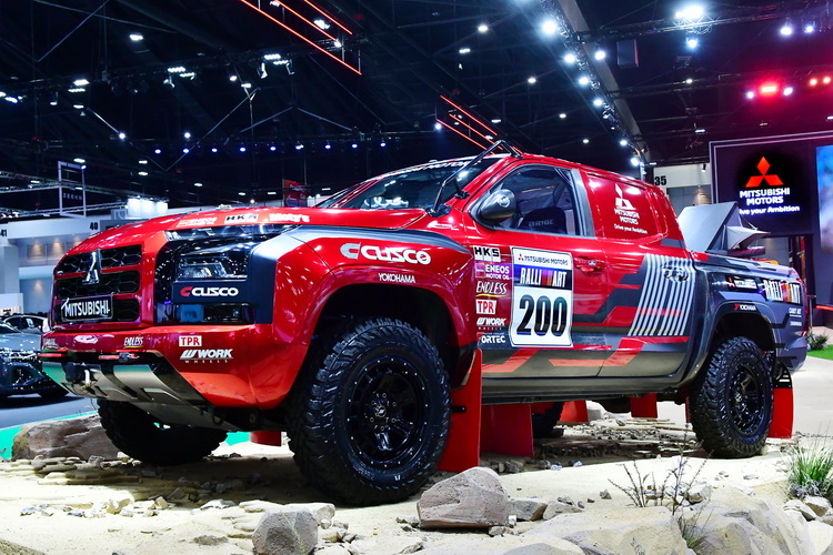 ทั้งนี้ รถแข่งไทรทัน แรลลี่คาร์ ซึ่งจะร่วมแข่งขันรายการเอเชีย ครอสคันทรี แรลลี่ 2024 ได้รับการเผยโฉมใหม่ ที่งานบางกอก อินเตอร์เนชั่นแนล มอเตอร์โชว์ ครั้งที่ 45 โดยยังคงความโดดเด่นที่ดุดันเช่นเดียวกับรถแข่งของปีที่แล้ว ด้วยการใช้สีแดงและเส้นสายสีดำที่เป็นสัญลักษณ์สะท้อนถึง “ลาวา” หินภูเขาไฟที่อัดแน่นด้วยพลังงานอันทรงพลัง และในปีนี้รถแข่งจะยังคงใช้สีแดงอันทรงพลังเป็นสีหลัก เสริมด้วยกราฟิกที่สื่อถึงฝุ่นในการแข่งขันแรลลี่ที่ด้านหน้าและต่อเนื่องไปด้านข้าง ในขณะที่ด้านหลังประกอบด้วยกราฟิกสีเทาที่แสดงถึงลาวาที่พุ่งออกมาและแข็งตัวเป็นหินภูเขาไฟ สะท้อนโฉมใหม่ที่ผสานความโฉบเฉี่ยวคล่องตัว ความแข็งแกร่งทนทาน ความน่าเชื่อถือที่ไว้ใจได้ในทุกเส้นทางของรถแข่งไทรทัน แรลลี่คาร์