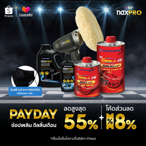 ผู้นำด้านสีพ่นรถยนต์ กับคอนเซ็ป Beauty Mobility อย่าง บริษัท นิปปอนเพนต์ (ประเทศไทย) จำกัด หน่วยธุรกิจสีพ่นซ่อมรถยนต์ จัดโปรฯ PAYDAY ช้อปเพลิน ดีลสิ้นเดือน ลดสูงสุด 55% + คูปองส่วนลดเพิ่มสูงสุดถึง 8 % คุ้มสุดๆจัดเต็มมาให้ กลุ่มคนรักรถโดยซื้อผลิตภัณฑ์ดูแลรักษารถยนต์ NAXPRO เมื่อสั่งซื้อครบ 399 บาท รับของแถม หน้ากากแนกซ์โปร 1 ชิ้น พิเศษสุดส่งฟรี เมื่อซื้อครบ 499.- ตลอดทั้งเดือนมิถุนายนนี้…พร้อมแล้วไป ช้อปกันเลยหาซื้อได้ที่Shopee,Lazadaตั้งแต่วันที่25-30มิ.ย.65