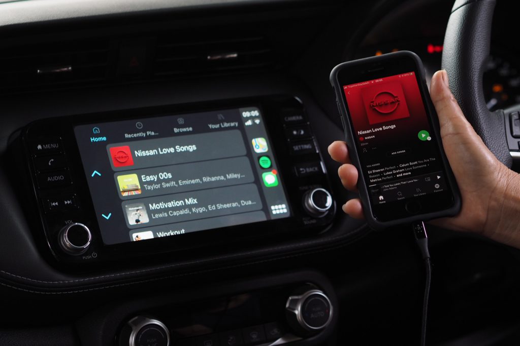 ส่วนจะเปิดเพลงตอนไหนและที่ไหนดี นิสสัน ขอแนะนำเลยว่าช่วงเวลาที่อยู่กันสองต่อสองระหว่างทางกลับบ้านหลังออกเดทเหมาะสุด ๆ ก็แหม่! จะมีอะไรดีไปกว่าการจบเดทดี ๆ ด้วยการเผยความในใจในพื้นที่ส่วนตัวที่ไม่มีคนอื่นแบบนี้ กดปุ่มบวก (+) แล้วสร้าง Playlist รวมเพลงรักที่ตรงใจคุณและคนข้างกาย ก่อนบอกรักผ่านเพลงกันยาว ๆ ซึ่งพิเศษสุดสำหรับลูกค้านิสสัน ที่สามารถเลือกฟังจากแอพพลิเคชันฟังเพลงออนไลน์ด้วยการเพียงเชื่อมต่อสมาร์ทโฟน กับ Apple CarPlay* และ Android Auto* ผ่าน NissanConnect ที่มีอยู่ในรถยนต์หลากหลายรุ่นทั้ง นิสสัน อัลเมร่า, นิสสัน คิกส์ อี-พาวเวอร์, นิสสัน เทอร์รา รวมถึงรถกระบะสายลุยอย่าง นิสสัน นาวารา ให้เราได้ฟังเพลงกันได้ยาว ๆ แล้วมาลุ้นกันว่าจะได้ขึ้น “In a relationship” ทิ้งท้ายวันวาเลนไทน์นี้หรือเปล่า