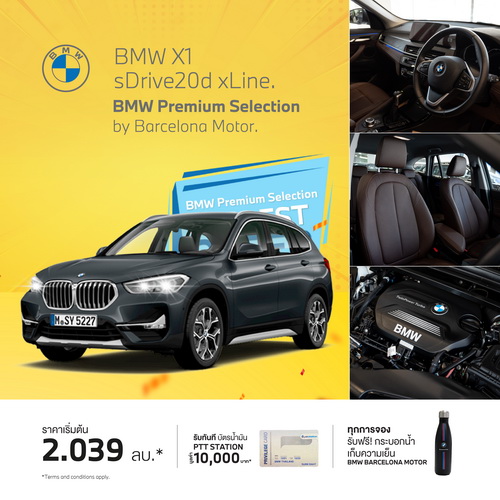 บริษัท บาเซโลนา มอเตอร์ จำกัด ผู้จำหน่ายรถยนต์ BMW, MINI และ BMW Motorrad จัดกิจกรรมครั้งใหญ่ Barcelona Motor Used Cars Grand Sale ขนทัพรถ BMW Premium Selection หลากหลายรุ่น และ BMW Used Cars ที่บาเซโลนา มอเตอร์คัดสรรแต่รถดีๆ สภาพสวยเหมือนใหม่ ทั้งป้ายแดงและป้ายขาว พร้อมรับแคมเปญสุดพิเศษตลอดเดือน พบกิจกรรมพิเศษและดูรถคันจริงพร้อมกันได้ วันที่ 21 – 22 ตุลาคม 2565 ที่บาเซโลนา มอเตอร์ สาขาวิภาวดีพบรถ BMW PREMIUM SELECTION ราคาพิเศษ รับข้อเสนอที่ดีที่สุดจาก Barcelona Motor Used Car 1st CLASS INSURANCE 1 YEARS ประกันภัยชั้น 1 นาน 1 ปี BARCELONA MOTOR BOTTLE กระบอกน้ำเก็บความเย็น GASOLINE CARD VALUED 5,000 BAHT บัตรน้ำมันมูลค่า 5,000 บาท