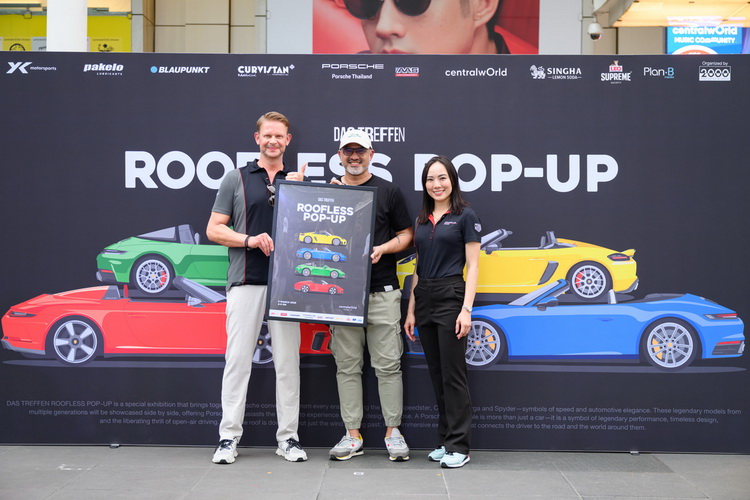 ปอร์เช่ ประเทศไทย ร่วมกับ Das Treffen จัดงาน “Das Treffen: Roofless” ป๊อปอัปสุดเอ็กซ์คลูซีฟ ณ ลานหน้าศูนย์การค้าเซ็นทรัลเวิลด์ นำเสนอเสน่ห์เหนือกาลเวลาของรถสปอร์ตเปิดประทุนจากปอร์เช่ (Porsche) ในบรรยากาศสุดพิเศษ ไฮไลท์ของงาน ได้แก่ 911 สปีดสเตอร์ (911 Speedster) ปี 2018 และ 911 เทอร์โบ เอส คาบริโอเลต (911 Turbo S Cabriolet) รุ่นล่าสุด ที่สะกดทุกสายตา มอบประสบการณ์เหนือระดับให้กับผู้ที่หลงใหลในเสน่ห์ของรถเปิดประทุนในประเทศไทย งาน “Das Treffen: Roofless” ป๊อปอัป จัดขึ้นในวันที่ 9 มีนาคม 2025 ซึ่งได้รวบรวมรถปอร์เช่ (Porsche) เปิดประทุนจำนวน 26 คัน จากกลุ่มคนผู้รักปอร์เช่ (Porsche) ในประเทศไทย มารวมตัวกัน ณ ลานหน้าศูนย์การค้าเซ็นทรัลเวิลด์ ซึ่งเป็นศูนย์การค้าใจกลางกรุงเทพฯ เปิดโอกาสให้สาธารณชนได้สัมผัสความงดงามเหนือกาลเวลาของรถสปอร์ตเปิดประทุนระดับไอคอน พร้อมสร้างพื้นที่ให้แฟนๆ ปอร์เช่ (Porsche) ได้พบปะ แลกเปลี่ยนประสบการณ์ และแบ่งปันความหลงใหลในการขับขี่แบบเปิดประทุน