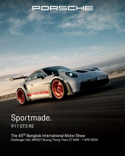 ปอร์เช่ ประเทศไทย โดย เอเอเอส กรุ๊ป ผู้นำเข้าและตัวแทนจำหน่ายรถยนต์ปอร์เช่อย่างเป็นทางการแต่เพียงผู้เดียวในประเทศไทย ขอเรียนเชิญทุกท่านเข้าร่วมงาน “บางกอก อินเตอร์เนชั่นแนล มอเตอร์โชว์ 2024 ครั้งที่ 45” จัดขึ้นตั้งแต่วันพุธที่ 27 มีนาคม ถึงวันอาทิตย์ที่ 7 เมษายน 2567 ณ อิมแพ็ค ชาเลนเจอร์ เมืองทองธานี บริเวณบูธ A15 อาคารชาเลนเจอร์ อิมแพค เมืองทองธานีภายในงานจะมีการปรากฏตัวของ 911 GT3 RS รถสปอร์ตสมรรถนะสูงที่ถ่ายทอด DNA ของรถแข่งปอร์เช่ไว้อย่างแท้จริง และเรายังได้ขนทัพยนตรกรรมสปอร์ต ปอร์เช่ถึง 12 รุ่น เพื่อจัดแสดงในงานมอเตอร์โชว์ครั้งนี้ ถือเป็นการนำความฝันแห่งรถสปอร์ตมาสู่ความเป็นจริง พร้อมให้คุณเป็นเจ้าของรถปอร์เช่ในฝันได้ทันที กับช่วงเวลาสุดพิเศษ ที่ทุกท่าจะสามารถครอบครองรถปอร์เช่ได้อย่างไม่ต้องรอนานอีกต่อไป ด้วยรถยนต์พร้อมส่งมอบ กว่า 3 รุ่น ปอร์เช่ 911รถสปอร์ตในตำนาน ปอร์เช่ไทคานน์ (Taycan) รถสปอร์ตพลังงานไฟฟ้า 100% สุดทันสมัย และรถปอร์เช่พานาเมร่า (Panamera) รถสปอร์ตซีดานที่มาพร้อมสมรรถนะและความหรูหรา พร้อมยนตรกรรมสปอร์ตปอร์เช่อีกมากมาย ให้คุณได้สัมผัสและครอบครอง