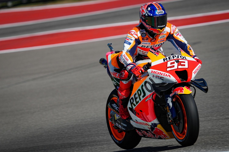 แฟนโมโตจีพีทั่วโลกได้รับข่าวดีเมื่อ มาร์ค มาร์เกซ เจ้าของหมายเลข 93 จาก เรปโซล ฮอนด้า กลับมาจากอาการบาดเจ็บ ประเดิมรั้งอันดับ 6 จากการซ้อมวันแรกด้วยเวลาต่อรอบ 2 นาที 3.041 วินาที ตามด้วย โปล เอสปาร์ปาโร ทีมเมทหมายเลข 44 ในอันดับ 12 ด้วยเวลา 2 นาที 3.438 วินาที ขณะที่ อเล็กซ์ มาร์เกซ นักบิดสแปนิชหมายเลข 73 จาก แอลซีอาร์ ฮอนด้า และทีมเมทชาวญี่ปุ่นอย่าง ทาคาอากิ นาคากามิ หมายเลข 30 รั้งอันดับ 16 และ 17 ด้วยเวลาต่อรอบ 2 นาที 3.795 วินาที และ 2 นาที 4.074 วินาที ตามลำดับ