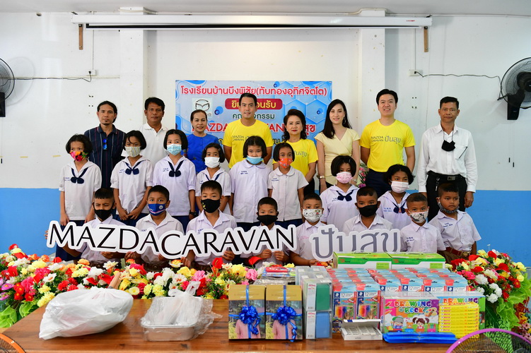 มาสด้าปลุกพลัง สร้างขวัญกำลังใจ ให้คนไทยเข้มแข็ง คืนความสุขกลับสู่สังคมอีกครั้ง เดินหน้าสานต่อโครงการ “มาสด้า ปันสุข” ต่อเนื่องเป็นปีที่ 3 จัดกิจกรรมภายใต้ภารกิจในการตอบแทนสังคมกับ “MAZDA CARAVAN ปันสุข…คนไทยก้าวไปด้วยกัน” ด้วยขบวนคาราวานรถปิกอัพ มาสด้า บีที-50 ขับไปส่งมอบอุปกรณ์การเรียนการสอน อุปกรณ์กีฬา ทุนการศึกษา และเลี้ยงอาหารกลางวันแก่เด็กนักเรียนใน 4 จังหวัดเมืองรอง พร้อมพาศึกษาเรียนรู้ที่ศูนย์พัฒนาวิชาชีพของชุมชนและแหล่งท่องเที่ยวไฮไลท์ของแต่ละจังหวัด เพื่อให้ความช่วยเหลือผู้คนในสังคมควบคู่กับการส่งเสริมการท่องเที่ยว และพัฒนาเศรษฐกิจของชุมชนให้เติบโตอย่างยั่งยืนไปพร้อมๆ กัน