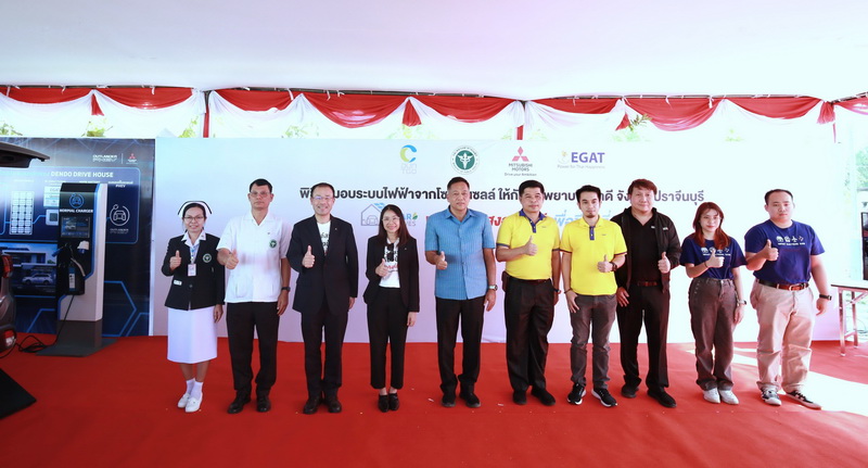 บริษัท มิตซูบิชิ มอเตอร์ส (ประเทศไทย) จำกัด ส่งมอบระบบไฟฟ้าจากโซล่าร์เซลล์รวมติดตั้งระบบไฟฟ้าพลังงานสะอาดแล้วทั้งสิ้น 450 กิโลวัตต์ ด้วยงบกว่า 14.4 ล้านบาท แก่โรงพยาบาลนาดี จังหวัดปราจีนบุรีมร. เออิจิ โอกาวะ (ที่ 3 จากซ้าย) กรรมการรองผู้จัดการใหญ่ สายงานผลิต มิตซูบิชิ มอเตอร์ส ประเทศไทย พร้อมด้วย นางพัชรี โฆษิตวรกิจกุล (ที่ 4 จากซ้าย) ผู้ช่วยกรรมการผู้จัดการใหญ่ สายงานห่วงโซ่อุปทาน มิตซูบิชิ มอเตอร์ส ประเทศไทย ร่วมส่งมอบระบบไฟฟ้าจากโซล่าร์เซลล์ แก่โรงพยาบาลนาดี จังหวัดปราจีนบุรี ภายใต้โครงการ ‘Solar For Lives : พลังงานแสงอาทิตย์ เพื่อชีวิตที่ดีกว่า’ เพื่อมุ่งสนับสนุนการใช้พลังงานสะอาดในด้านสาธารณสุข และส่งเสริมให้ประเทศไทยก้าวสู่สังคมคาร์บอนเป็นกลาง โดยมี นางวิไลรัตน์ โยธาพันธ์(ซ้ายสุด) หัวหน้ากลุ่มการพยาบาล โรงพยาบาลนาดี เป็นตัวแทนรับมอบ พร้อมด้วยนายทนงค์ ดวงมุกพะเนาว์ (ที่ 2 จากซ้าย) รองนายแพทย์สาธารณสุข จังหวัดปราจีนบุรี นายธรรมรัฏฐ์ งามแสง (ที่5 จากซ้าย) นายอำเภอนาดี จังหวัดปราจีนบุรี และ นายนำพล โพธิวงศ์ (ที่ 5 จากขวา) ผู้อำนวยการฝ่ายกลยุทธ์ความยั่งยืน การไฟฟ้าฝ่ายผลิตแห่งประเทศไทย ร่วมเป็นสักขีพยาน