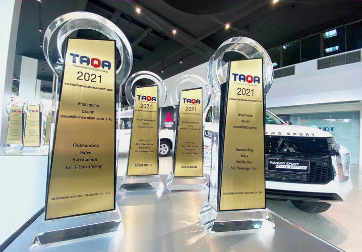 บริษัท มิตซูบิชิ มอเตอร์ส (ประเทศไทย) จำกัด ได้รับ รางวัลธุรกิจยานยนต์ยอดนิยม ประจำปี 2564 หรือ TAQA ด้านการขาย ตอกย้ำความพึงพอใจของลูกค้าในทุกมิติการให้บริการของผู้เป็นเจ้าของรถยนต์มิตซูบิชิประเภทรถยนต์นั่งส่วนบุคคล และประเภทรถยนต์เพื่อการพาณิชย์ขนาด 1 ตัน ทำให้ มิตซูบิชิ มอเตอร์ส ประเทศไทย รั้งตำแหน่งสูงสุดด้านความพึงพอใจด้านการขาย สำหรับประเภทรถยนต์นั่งส่วนบุคคล และประเภทรถยนต์เพื่อการพาณิชย์ขนาด 1 ตัน รางวัลดังกล่าวนี้ เป็นอีกรางวัลที่มิตซูบิชิ มอเตอร์ส ประเทศไทย ได้รับเพิ่มเติมจากก่อนหน้านี้ที่เคยได้คว้า 2 รางวัล ธุรกิจยานยนต์ยอดนิยมประจำปี 2564 ด้านบริการหลังการขายสำหรับรถยนต์ทั้ง 2 ประเภท มาแล้ว ในเดือนธันวาคมที่ผ่านมา โดยมิตซูบิชิ มอเตอร์ส ประเทศไทย ได้รับรางวัลอันทรงเกียรติ 2 รางวัลนี้ต่อเนื่องถึง 2 ปีติดต่อกัน