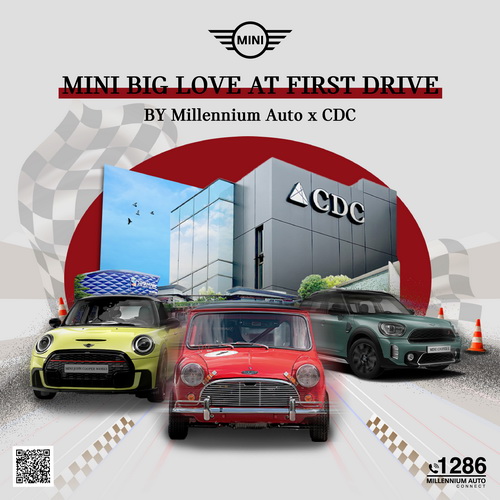 มินิ มิลเลนเนียม ออโต้ ผู้จำหน่ายรถยนต์ มินิ อย่างเป็นทางการ รวมพลคนรัก มินิ พร้อมเชิญชวนผู้ที่อาศัยอยู่ในละแวกถนนเลียบทางด่วนรามอินทรา มาสนุกกันในงาน ‘MINI Big Love at 1st Drive by Millennium Auto x CDC’ ระหว่างวันที่ 17-19 พฤษภาคมนี้ ที่คริสตัล ดีไซน์ เซ็นเตอร์ (CDC) กับหลากหลายกิจกรรมที่ตอบโจทย์ชาว MINIster อย่างแท้จริง