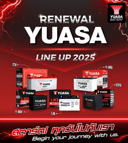 บริษัท ยัวซ่าแบตเตอรี่ ประเทศไทย จำกัด (มหาชน) เปิดตัว 5 กลุ่มผลิตภัณฑ์ แบตเตอรี่รุ่นใหม่ที่วิจัยและปรับปรุงด้วยเทคโนโลยีขั้นสูง ซึ่งถือเป็นก้าวสำคัญในการยกระดับภาพลักษณ์และทิศทางใหม่ของยัวซ่าแบตเตอรี่