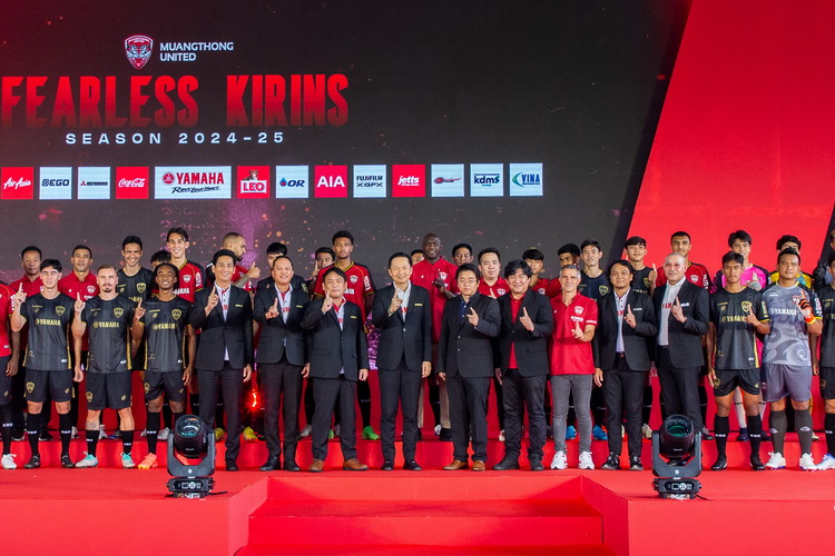 นายพงศธร เอื้อมงคลชัย ประธานกรรมการบริหาร มร.ฮิเดฮิโกะ ทาคากิ รองประธานกรรมการบริหาร นายภาณุพล กิตติคำรณ ผู้จัดการใหญ่ด้านการค้า นายอุกฤษณ์ ภาควิวรรธ รองผู้จัดการใหญ่ด้านวางแผนการค้า และการตลาด บริษัท ไทยยามาฮ่ามอเตอร์ จำกัด ถ่ายภาพร่วมกับนายวิลักษณ์ โหลทอง ประธานสโมสรเมืองทอง ยูไนเต็ด นายรณฤทธิ์ ซื่อวาจา ผู้อำนวยการสโมสรเมืองทอง ยูไนเต็ด พร้อมด้วยทัพแข้งดังถ่ายภาพร่วมกันในงานแถลงข่าวเปิดตัวสโมสรเมืองทอง ยูไนเต็ด ภายใต้แคมเปญ “Fearless Kirins-เมืองทองไม่กลัวใคร” ไล่ล่าความสำเร็จในศึกไทยลีก และศึกเอเชีย แชมเปียนลีก รอบคัดเลือก ประจำฤดูกาล 2024/25 โดยยามาฮ่ายังคงร่วมผลักดันสโมสรเมืองทอง ยูไนเต็ดอย่างต่อเนื่องเข้าสู่ปีที่ 17 นับจากปี 2008 – 2024 สำหรับการแถลงข่าวเปิดตัวสโมสรเมืองทอง ยูไนเต็ด ประจำฤดูกาล 2024/25 มีขึ้น ณ สนามธันเดอร์โดม สเตเดี้ยม เมืองทอง เมื่อเร็วๆ นี้