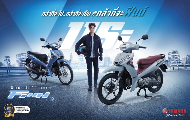บริษัท ไทยยามาฮ่ามอเตอร์ จำกัด ตอกย้ำความเป็น 1 ของรถจักรยานยนต์ครอบครัวยุคใหม่ระดับพรีเมียม ด้วยการส่ง “ยามาฮ่า ฟินน์ ใหม่” กล้าที่จะไป…กล้าที่เป็น #กล้าที่จะฟินน์…บ่งบอกความเป็นตัวตนกับยามาฮ่าฟินน์รถครอบครัวระดับพรีเมียม สีสันกราฟิกใหม่ สวยล้ำสไตล์โมเดิร์น ด้วยสีสันที่มากถึง 8 สีใหม่สุดพรีเมียม พร้อมเครื่องยนต์หัวฉีดอัจฉริยะ 115 ซีซี ฟินน์จัดประหยัดจริง ประหยัดน้ำมันสูงสุด 96.16 กม./ลิตร* แรงดี ทนทาน ไม่จุกจิก และมีสมองกลอัจฉริยะ ECU ควบคุมการสั่งจ่ายน้ำมันทำให้ประหยัดมากขึ้น เป็นมิตรกับสิ่งแวดล้อม และครั้งแรกของโลก! รับประกันนานถึง 5 ปี ไม่จำกัดระยะทาง