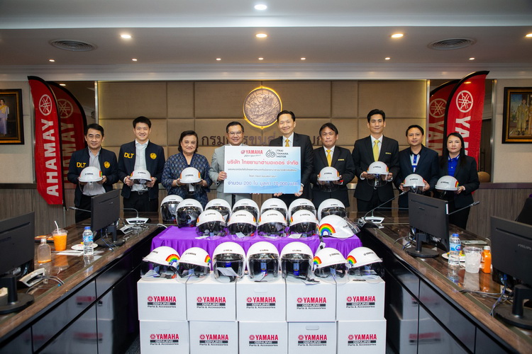 นายพงศธร เอื้อมงคลชัย ประธานกรรมการบริหาร มร.ฮิเดฮิโกะ ทาคากิ รองประธานกรรมการบริหาร นายอุกฤษณ์ ภาควิวรรธ รองผู้จัดการใหญ่ด้านวางแผนการค้า และการตลาด บริษัท ไทยยามาฮ่ามอเตอร์ จำกัด ร่วมมอบหมวกนิรภัยขนาดเล็กที่ได้มาตรฐาน มอก. จำนวน 200 ใบ แก่นายจิรุตม์ วิศาลจิตร อธิบดีกรมการขนส่งทางบก นางสิริรัตน์ วีรวิศาล รองอธิบดีกรมการขนส่งทางบก และนายฐิติพัฒน์ ไทยจงรักษ์ ผู้อำนวยการสำนักสวัสดิภาพการขนส่งทางบก ให้เกียรติรับมอบ เพื่อนำไปแจกจ่ายให้กับเยาวชน และสตรีใช้สวมใส่ทุกครั้งเมื่อขับขี่ หรือโดยสารรถจักรยานยนต์ เพื่อป้องกันและลดการสูญเสียเมื่อเกิดอุบัติเหตุบนท้องถนน