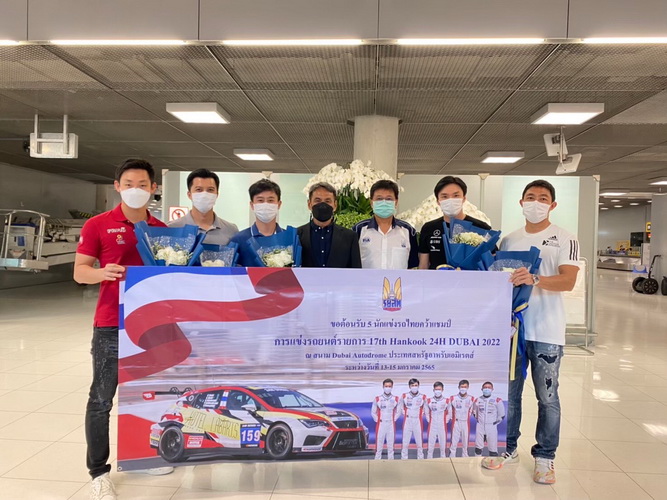 พฤฒิรัตน์ รัตนกุล เสรีเริงฤทธิ์ ประธานคณะกรรมการกีฬายานยนต์ (ที่ 4 จากซ้าย) และ สุพจน์ กสิกรรม ประธานอนุกรรมการ การแข่งขันรถยนต์ทางฝุ่น (ที่ 5 จากซ้าย) ราชยานยนต์สมาคมแห่งประเทศไทยในพระบรมราชูปถัมภ์ (ร.ย.ส.ท.) หรือ RAAT ร่วมแสดงความยินดีกับ 5 นักแข่งไทย นำโดย อนุสรณ์ อาศิรเลิศสิริ, กันตธีร์ กุศิริ, กันตศักดิ์ กุศิริ, ธนาตย์ เสถียรถิระกุล และ ภาสฤทธิ์ พรหมสมบัติ ที่คว้าแชมป์ระดับโลก(สนามแรก)ให้กับชาวไทยเป็นครั้งแรก ในรายการ Hankook 24H DUBAI ซึ่งจัดขึ้น ณ สนาม Dubai Autodrome ประเทศสหรัฐอาหรับเอมิเรตส์ เมื่อไม่นานนี้