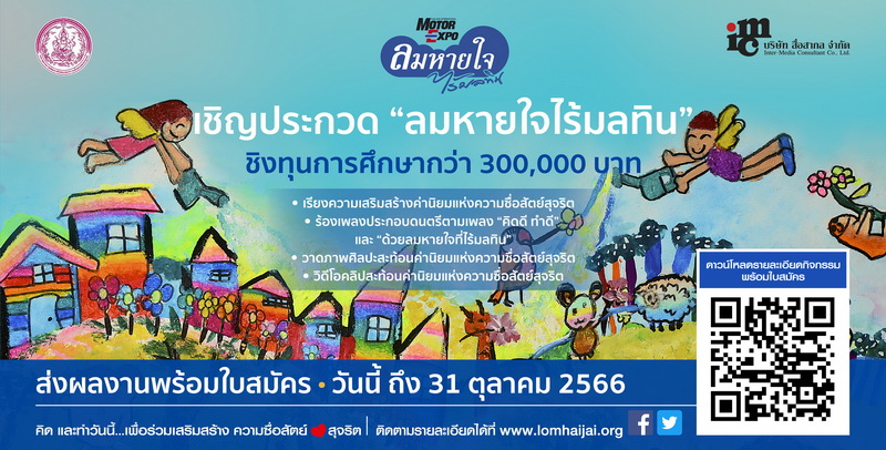 มูลนิธิลมหายใจไร้มลทิน ร่วมกับ กรมกิจการเด็กและเยาวชน ชวนเด็ก และเยาวชน ส่งผลงานร่วมรณรงค์สร้างค่านิยมซื่อสัตย์สุจริต กับการประกวด 4 ประเภท ได้แก่ เรียงความ ร้องเพลง วาดภาพ และ VDO Clip ตั้งแต่วันนี้ถึง 31 ตุลาคม 2566