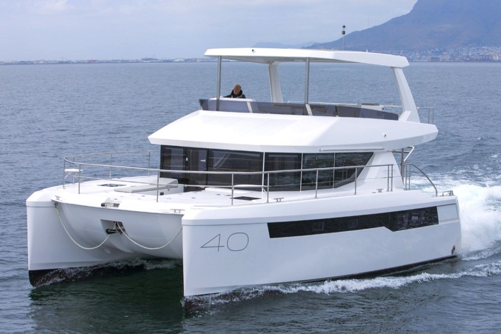 ที่งานแสดง Palm Beach ส่วนท้ายเรือขนาด 40 ฟุตดึงดูดครอบครัวและคู่รักที่ผลัดกันเข้ามาสำรวจคุณสมบัติของเรือคาตามารันลำใหม่อันน่าตื่นเต้นที่ออกแบบมาเพื่อทำให้ความฝันของการเดินทางที่น่าตื่นเต้นเป็นจริงเครื่องยนต์คู่ 370hp ขับเคลื่อนตัวเรือ 1 ถึง 23 นอตในการทดลองในทะเลโมเดลดังกล่าวเปิดตัวไปทั่วโลกที่งาน Miami International Boat Show เมื่อเดือนก่อน ขณะที่ตัวเรือ 2 ลำได้รับการจัดสรรสำหรับการเปิดตัวโมเดลนี้ในยุโรปที่งาน International Multihull Show บนชายฝั่งทางใต้ของฝรั่งเศสในเดือนเมษายน