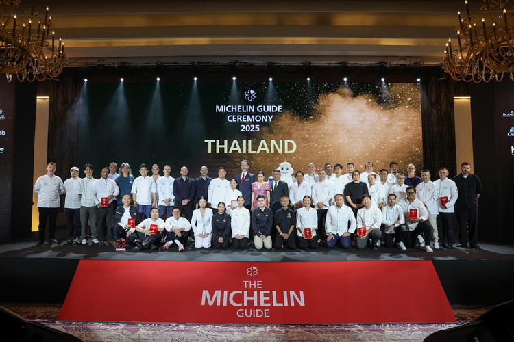 ในงานเปิดตัวคู่มือ ‘มิชลิน ไกด์’ ฉบับประเทศไทย ประจำปี 2568 (The MICHELIN Guide Thailand 2025) บุคลากรในแวดวงอาหารของไทยร่วมฉลองความสำเร็จอย่างยิ่งใหญ่ หลังจาก ‘ศรณ์’ ได้รับการประกาศชื่อเป็นร้านอาหารที่คว้ารางวัลระดับ ‘สามดาวมิชลิน’ อันทรงเกียรติมาครองได้สำเร็จเป็นร้านแรกในไทย ทั้งนี้ ภายในงานนอกจากจะมีการเปิดเผยรายชื่อร้านอาหารทั้งหมดที่ผ่านการคัดสรรให้ตีพิมพ์ลงในคู่มือฯ ฉบับล่าสุดแล้ว ยังมีพิธีมอบรางวัลและฉลองความสำเร็จให้กับบุคลากรและทีมงานร้านอาหารที่ได้รับรางวัล ‘ดาวมิชลิน’ และรางวัลพิเศษอื่น ๆ อีกด้วย