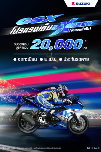 แรงเต็ม Max ในคลาส 150 ซีซีรับไปเลย ของแถมมูลค่ารวมถึง 20,000 บาทผ่อนเริ่มต้นเพียง 2,XXX บาท / 36 เดือน รับข้อเสนอทันที กับรุ่น GSX-R150 Limited EditionGSX-R150 Sport EditionGSX-S150 Naked Edition ด่วน!! โปรฯ เร้าๆ แบบนี้มีจำนวนจำกัด Auto Automobile autowoke Car Car news knowledge Motor Sport news worldcar ข่าว ข่าวรถยนต์ ข่าวออนไลน์ ข่าวอัพเดท จักรยานยนต์ ทดลองขับ ทดสอบรถยนต์ มอเตอร์ไซค์ ยานยนต์ รถมือสอง รถยนต์ รถเก่า รถใหม่