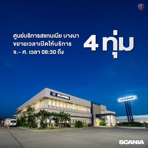 สแกนเนีย ยกระดับมาตรฐานงานบริการให้รถลูกค้าพร้อมใช้งานอยู่เสมอ ด้วยการขยายเวลาเปิดศูนย์บริการเป็น 08.00 – 22.00 น. เพื่อเพิ่มโอกาสทางธุรกิจให้กับลูกค้า ทั้งกลางวัน กลางคืน สนับสนุนลูกค้าชาวไทยอย่างเต็มกำลัง ฟื้นตัว สู้สถานการณ์โควิด-19
