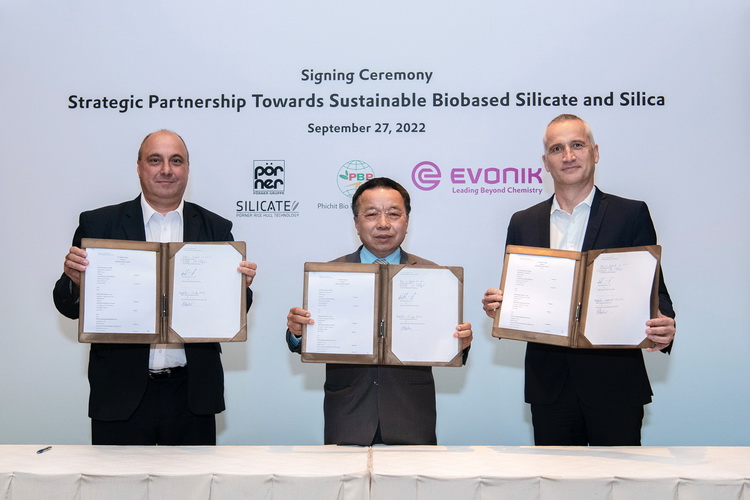 “อิวอนิก” หนึ่งในบริษัทผู้ผลิตซิลิก้ารายใหญ่ระดับโลก ร่วมมือกับ “เพอร์เนอร์ กรุ๊ป” ประเทศออสเตรีย และ “บริษัท พิจิตรไบโอเพาเวอร์ จำกัด” ประเทศไทย ในการผลิตซิลิก้าจากวัตถุดิบธรรมชาติภายใต้ชื่อทางการค้า ULTRASIL® สำหรับอุตสาหกรรมผลิตยางรถยนต์ ซึ่งเป็นสารที่ผลิตจากโซเดียมซิลิเกตที่ได้จากขี้เถ้าแกลบโดยใช้พลังงานชีวมวล นับว่าเป็นการขับเคลื่อนความเป็นกลางทางคาร์บอน (carbon neutrality) เข้าสู่ภาคการผลิตสำหรับอุตสาหกรรมยางรถยนต์