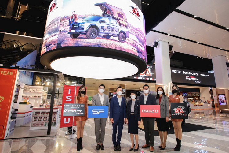 คุณปนัดดา เจณณวาสิน ประธานที่ปรึกษา และคุณวิชัย สินอนันต์พัฒน์ กรรมการ บริษัท ตรีเพชรอีซูซุเซลส์ จำกัด ร่วมกับคุณสุวัฒน์ ทองร่มโพธิ์ ประธานเจ้าหน้าที่บริหาร และ คุณสุวิทย์ ทองร่มโพธิ์ ประธานเจ้าหน้าที่บริหาร สายงานการตลาด บริษัท เอส เอฟ คอร์ปอเรชั่น จำกัด (มหาชน) ร่วมเปิดตัวภาพยนตร์โฆษณา Digital Sound Check ชุดใหม่ล่าสุด THE SOUND OF “MASTER OF ALL ROADS” ที่ถ่ายทอดเสียงบรรยากาศจริงจากการถ่ายทำภาพยนตร์สั้น “ISUZU V-CROSS 4×4 MASTER OF ALL ROADS…ตัวจริงทุกเส้นทาง” การเดินทางที่แสนประทับใจของนักแสดงหนุ่มหล่อ คุณนิว-ชัยพล จูเลียน พูพาร์ต กับ ISUZU V-CROSS 4×4 ให้ได้ฟังเสียงบรรยากาศการถ่ายทำในรูปแบบ ASMR เปรียบเสมือนให้ผู้ฟังได้อยู่ในบรรยากาศการถ่ายทำจริง ผ่านระบบภาพและเสียงสมบูรณ์แบบของโลกภาพยนตร์ ณ โรงภาพยนตร์ เอส เอฟ เวิลด์ ซีเนม่า ชั้น 7 ศูนย์การค้าเซ็นทรัลเวิลด์