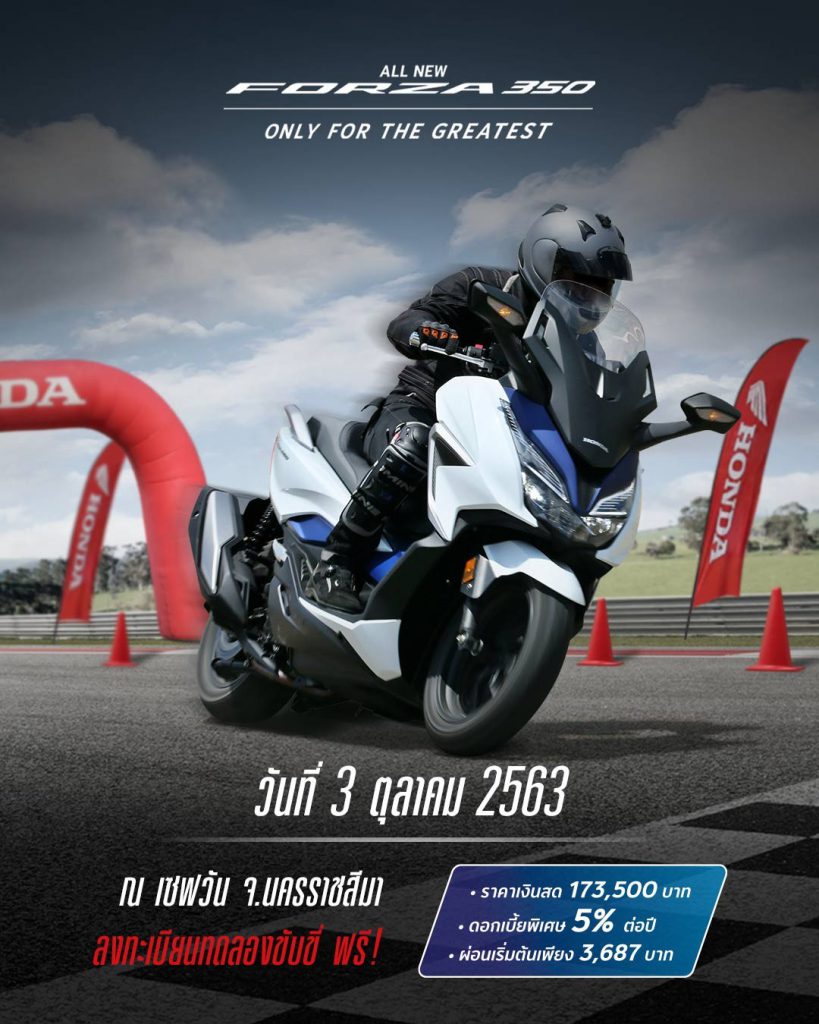 กำหนดการกิจกรรมทดสอบขับขี่ All New Forza350 เดือนตุลาคม 2563