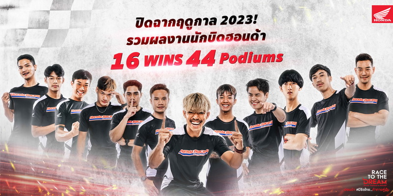 “ไทยฮอนด้า” ตอกย้ำความสำเร็จ กระหึ่มวงการมอเตอร์สปอร์ตตัวจริง ทั้งโครงการ “เรซ ทู เดอะ ดรีม” และ “เรซ ทู เดอะ แชมเปี้ยน” ด้วยผลงานกวาด 16 ชัยชนะ 44 โพเดียม ทั้งทางเรียบและทางฝุ่น ในทุกการแข่งขันในฤดูกาล 2023 พิสูจน์ให้เห็นถึงโครงสร้างที่แข็งแกร่งและความมุ่งมั่นในการพัฒนานักบิดตั้งแต่ระดับเยาวชน “ฮอนด้า อะคาเดมี่” สู่ “ฮอนด้า ไทยแลนด์ ทาเลนต์ คัพ” ไปจนถึงนักบิดระดับอาชีพอย่างมีมาตรฐาน ทั้งรูปแบบหลักสูตรการพัฒนา ผู้ฝึกสอน และแนวทางการผลักดันนักบิดตั้งแต่พื้นฐาน เพื่อป้อนเข้าสู่การแข่งขันทุกระดับอย่างมั่นคง ตามแผนที่มุ่งเน้นพัฒนาศักยภาพนักบิดและทีมแข่ง วางเป้าหมายในระดับโลกที่วางไว้