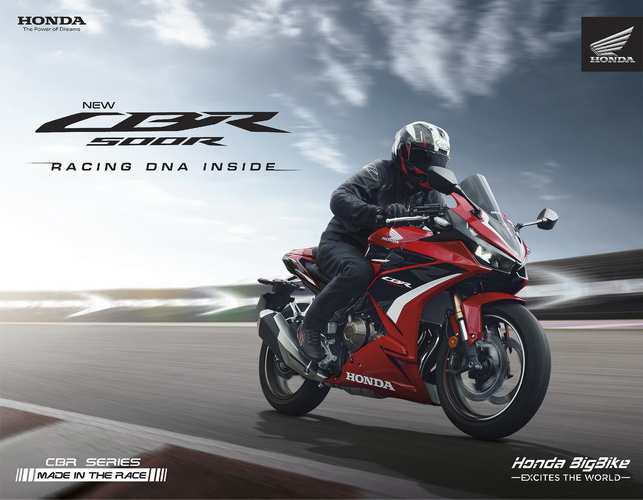 ฮอนด้าบิ๊กไบค์ New 500 Series มาพร้อมคอนเซปต์ “For The Real One” ถ่ายทอดความเร้าใจสู่สาวกบิ๊กไบค์ตัวจริง ตื่นตาตื่นใจด้วยดีไซน์ที่ดูบึกบึนโฉบเฉี่ยว แรงด้วยเครื่องยนต์ที่ทรงพลัง และออปชันที่ดีที่สุดในคลาส ตอบโจทย์ทุกไลฟ์สไตล์การขับขี่ด้วย 3 โมเดลที่แตกต่างตามความต้องการของคนรุ่นใหม่ ประกอบด้วย New CBR500R สำหรับนักบิดสายสปอร์ตเต็มขั้น, New CB500F เน็กเก็ตไบค์ที่ออกแบบมาเพื่อสายสตรีทโดยเฉพาะ และ New CB500X แอดเวนเจอร์ไบค์สำหรับผู้รักการผจญภัย