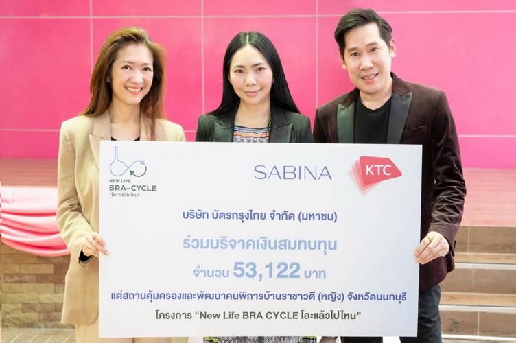 นายฐิติเทพ พงษ์ไพบูลย์ (ขวา) ผู้จัดการอาวุโส การตลาดบัตรเครดิต และนางสาวฐิติมา รัตนศิริวิไล (ซ้าย) ผู้จัดการ การตลาดบัตรเครดิต “เคทีซี” หรือ บริษัท บัตรกรุงไทย จำกัด (มหาชน) มอบเงินบริจาคจากโครงการ “New Life BRA CYCLE โละแล้วไปไหน” จำนวน 53,122 บาท (ห้าหมื่นสามพันหนึ่งร้อยยี่สิบสองบาทถ้วน) ให้กับนางสาววิษฐิดา อุ้ยตยะกุล (กลาง) ผู้ปกครองสถานคุ้มครองและพัฒนาคนพิการบ้านราชาวดี (หญิง) จังหวัดนนทบุรี เป็นผู้รับมอบ ซึ่งเงินบริจาคดังกล่าวได้จากการที่สมาชิกบัตรเครดิตเคทีซีใช้คะแนน KTC FOREVER จำนวนเท่ายอดใช้จ่ายต่อเซลส์สลิปแลกรับส่วนลดเพิ่ม 12% เมื่อชำระค่าสินค้า ณ ร้านค้าซาบีน่าที่ร่วมรายการทุกสาขาทั่วประเทศ ระหว่างวันที่ 15 มกราคม 2565 – 31 มีนาคม 2565 และทุกยอดการใช้จ่ายผ่านบัตรฯ ที่มีการแลกคะแนน เคทีซีได้ร่วมสมทบทุนเงินบริจาค 3% ของยอดใช้จ่ายดังกล่าวพิธีมอบเงินบริจาคจัดขึ้นที่สถานคุ้มครองและพัฒนาคนพิการบ้านราชาวดี (หญิง) จังหวัดนนทบุรี เมื่อเร็วๆ นี้
