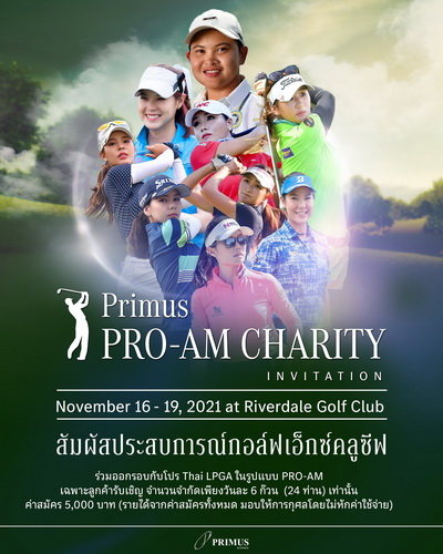 เบนซ์ไพรม์มัส ผนึกกำลัง สมาคม THAI LPGA เชิญชวนลูกค้าเมอร์เซเดส-เบนซ์ ร่วมออกรอบกับโปร THAI LPGA ในการแข่งขันกอล์ฟการกุศล PRIMUS PRO-AM CHARITY INVITATION สนาม Riverdale Golf Club วันที่ 16-19 พ.ย.64 สุดเอ็กซ์คลูซีพ เพียง 6 ทีม/วันเท่านั้น พร้อมลุ้นรางวัล Hole in One รถยนต์ Mercedes-Benz GLA AMG Dynamic มูลค่า 2.399 ล้านบาท รายได้ทั้งหมดมอบสมทบทุนให้แก่ “คณะแพทยศาสตร์ ศิริราชพยาบาล”