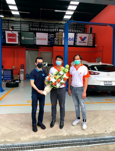 นายประพัฒน์ อัศวาดิศยางกูร (ซ้าย) กรรมการบริษัท, ผู้จัดการฝ่ายขายและการตลาดประจำภูมิภาค เอฟเอ็มพี ดิสทริบิวชั่น จำกัด ผู้ผลิตและจัดจำหน่าย ผ้าเบรกเบ็นดิกซ์ ร่วมแสดงความยินดีกับการเปิดศูนย์บริการ “ออโต้แบคส์ สาขา ติวานนท์ จังหวัดนนทบุรี” ศูนย์บริการและซ่อมบำรุงรถยนต์แบบครบวงจร โดยทีมช่างที่ชำนาญผ่านการอบรมได้มาตรฐานจากทีมช่างประเทศญี่ปุ่น ศูนย์บริการออโต้แบคส์ โดยมี นาย ฐากูร พวงมาลี (กลาง) ผู้จัดการทั่วไป และคุณ ธีรุดม์ ลิมวันฒนานนท์ (ขวา) ผู้จัดการฝ่ายจัดซื้อ บริษัท สยามออโต้แบคส์ จำกัด รับมอบกระเช้าดอกไม้ และให้การต้อนรับอย่างอบอุ่น สำหรับผู้ที่สนใจผลิตภัณฑ์ของเบ็นดิกซ์ สามารถหาซื้อได้ที่ศูนย์บริการ สยามออโต้แบคส์ ใกล้บ้านได้แล้ววันนี้
