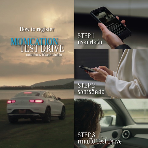 ในกิจกรรมในครั้งนี้ ทางเมอร์เซเดส-เบนซ์ (ประเทศไทย) ได้จัดรถยนต์ในกลุ่มเอสยูวี ได้แก่ GLC 220 d, GLC 220 d 4MATIC Coupé AMG และ GLC 220 d AMG Dynamic ให้คุณได้ทดลองขับรถพาคุณแม่ไปทานอาหารอร่อย ๆ พาคุณแม่ไปช้อปปิ้ง หรือจะพาคุณแม่ไปไหว้พระทำบุญที่วัดไหนก็ได้ คุณสามารถเข้าร่วมกิจกรรม “Momcation Test Drive” ง่าย ๆ ตลอดเดือนสิงหาคมนี้ โดยลงทะเบียนผ่านเว็บไซต์ ที่ http://mb4.me/Momcation22 ตั้งแต่วันที่ 5 – 15 สิงหาคม 2565 โดยสามารถนำรถยนต์ไปทดลองขับได้ในวันที่ 12 – 31 สิงหาคม 2565
