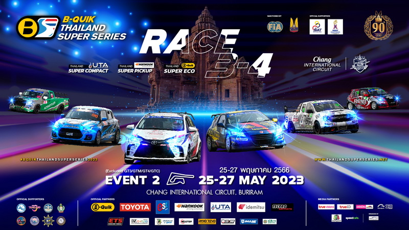 บริษัท เรซซิ่ง สปิริต จำกัด ในฐานะผู้จัดการแข่งขันรถยนต์ทางเรียบที่ดีที่สุดแห่งอาเซียน ปรับแผนความมันส์ ศึกเดือดนัดที่ 2 รายการ B-Quik Thailand Super Series 2023 ส่งทัพตัวแรง 3 รุ่น Thailand Super Eco, Thailand Super Compact และ Thailand Super Pickup ยึดหัวหาด สนามช้าง อินเตอร์เนชั่นแนล เซอร์กิต จ.บุรีรัมย์ เสิร์ฟเกมส์เดือด ในฐานะ Support Race ลุยดวลคันเร่งเก็บคะแนนสะสมสนามที่ 3 และ 4 ของฤดูกาล