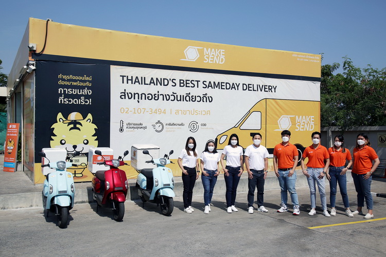 นายวันชัย ลี้นะวัฒนา ประธานเจ้าหน้าที่บริหาร บริษัท เอช เซม มอเตอร์ จำกัด (คนที่ 4 จากซ้าย) พร้อมทีมบริหาร ถ่ายภาพร่วมกับ นายเด่นพิพัฒน์ ใจตรง ประธานเจ้าหน้าที่บริหาร บริษัท เมคเซนด์ เอ็กซ์เพรส จำกัด (คนที่ 4 จากขวา) ในโอกาสส่งมอบรถมอเตอร์ไซค์ไฟฟ้า เอช เซม ไปตามศูนย์ต่างๆ ของ เมคเซนด์ เพื่อใช้ในการดำเนินธุรกิจ ณ ศูนย์กระจายสินค้า เมคเซนด์ เอ็กซ์เพรส สาขาประเวศ เมื่อวันที่ 20 ธันวาคม 2564 ที่ผ่านมา