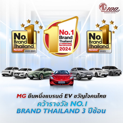 บริษัท เอสเอไอซี มอเตอร์ – ซีพี จำกัด และ บริษัท เอ็มจี เซลส์ (ประเทศไทย) จำกัด ผู้ผลิตและผู้จำหน่ายรถยนต์เอ็มจีในประเทศไทย คว้ารางวัล No.1 Brand Thailand 2024 ในหมวดรถยนต์ไฟฟ้า (EV Car) ติดต่อกันเป็นปีที่ 3 สะท้อนถึงการเป็นแบรนด์ที่ผู้บริโภคคนไทยไว้วางใจ และความสำเร็จในการยกระดับตลาดอีวีให้เติบโตอย่างยั่งยืน ด้วยความมุ่งมั่นในการนำเสนอยานยนต์ไฟฟ้า ควบคู่ไปกับการสร้างความแข็งแกร่งให้กับระบบนิเวศยานยนต์ไฟฟ้าอย่างต่อเนื่อง อีกทั้งยังเป็นแบรนด์ที่มีนโยบายการดูแลที่ชัดเจน และเป็นรูปธรรม